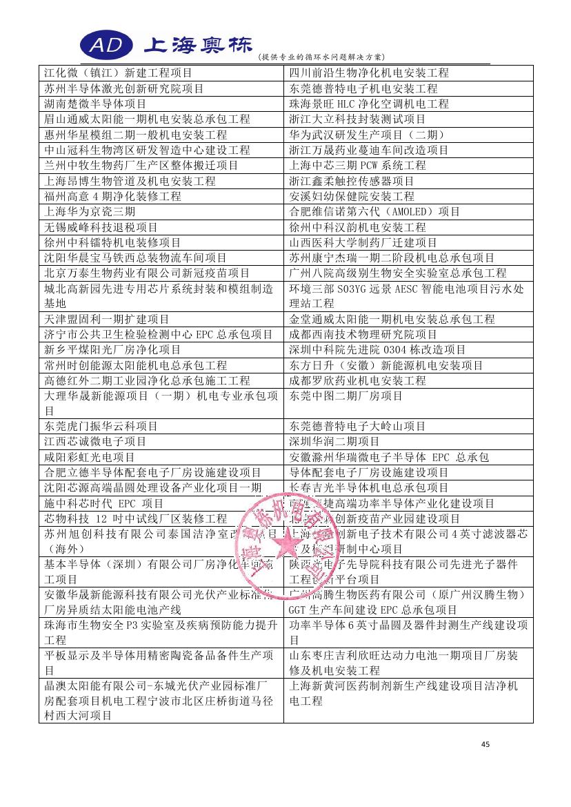 2023年上海奧棟合作項目清單